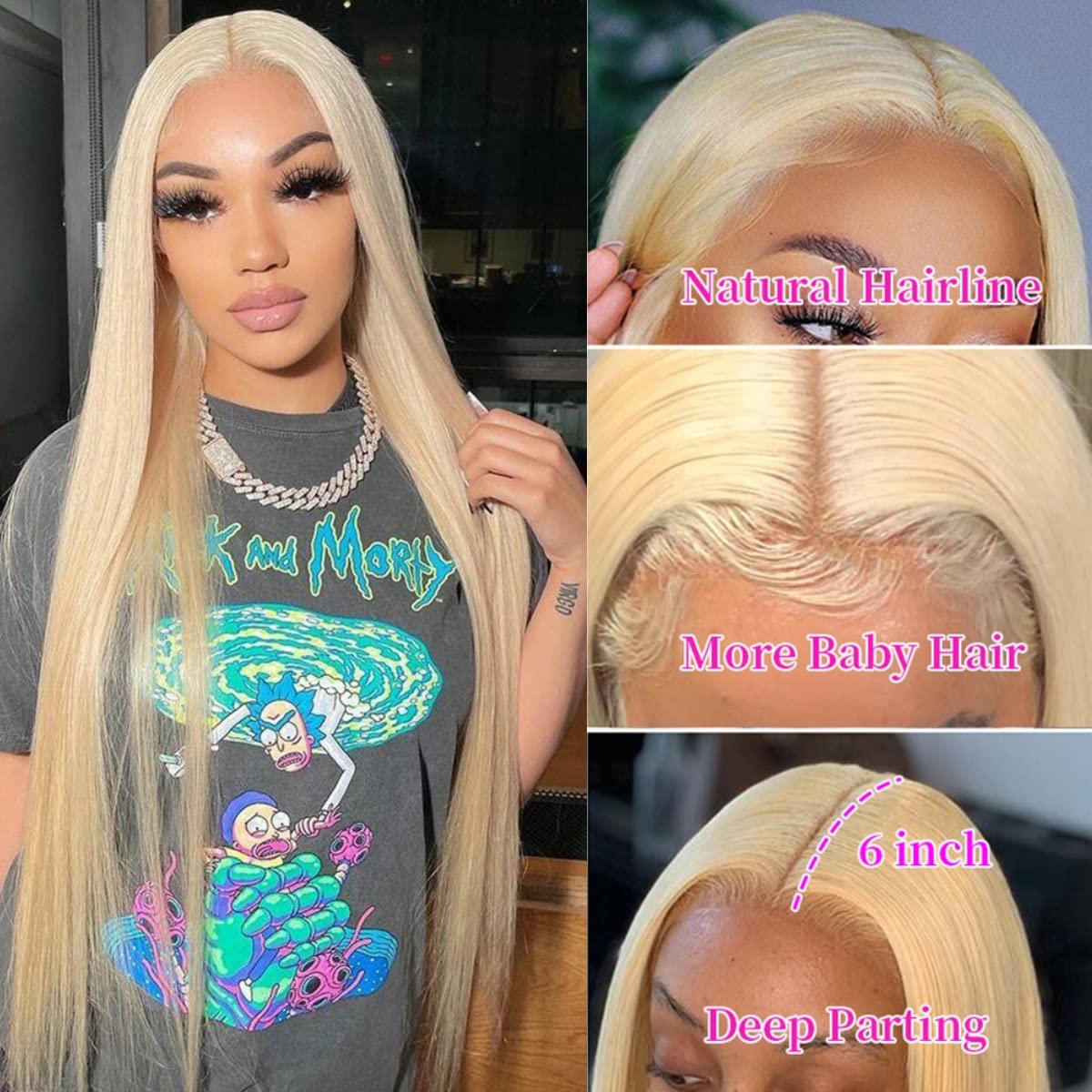 💎Hair Advantages: 613 Blonde Straight Hair 13x6 T Part Lace Front Wig. 6 inch Deep Parting Space allows more freedom with side or middle part. No Chemical Process. It's Soft and Tangle-Free Without Any Shedding.