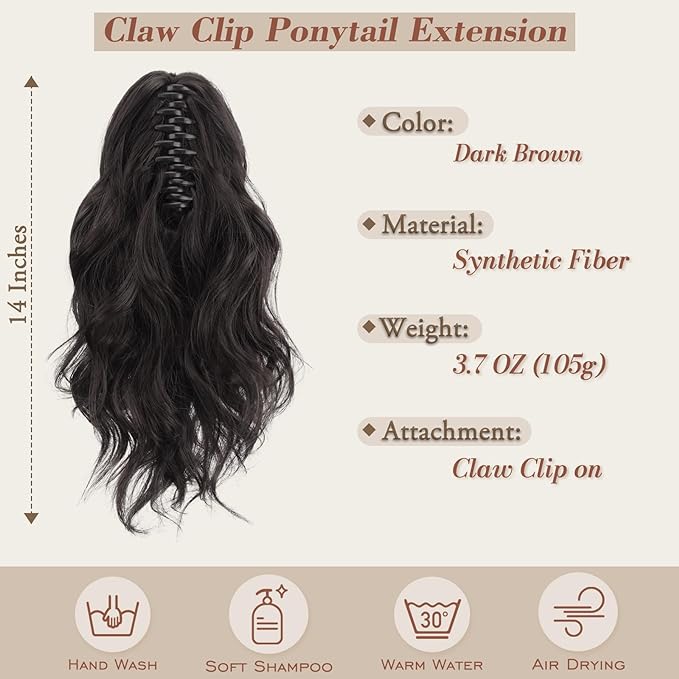 BARSDAR Ponytail Extension, 14'' Claw Clip Short Curly Wavy Ponytail Hair Extens