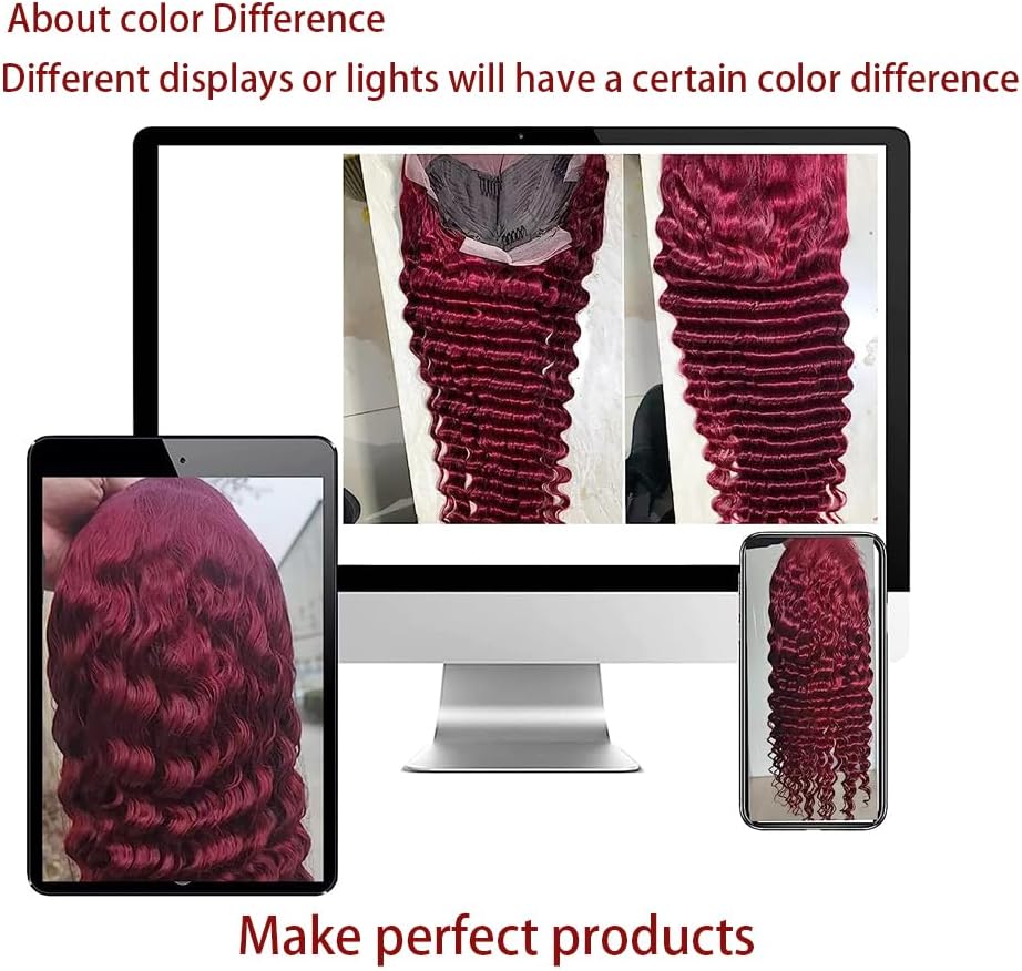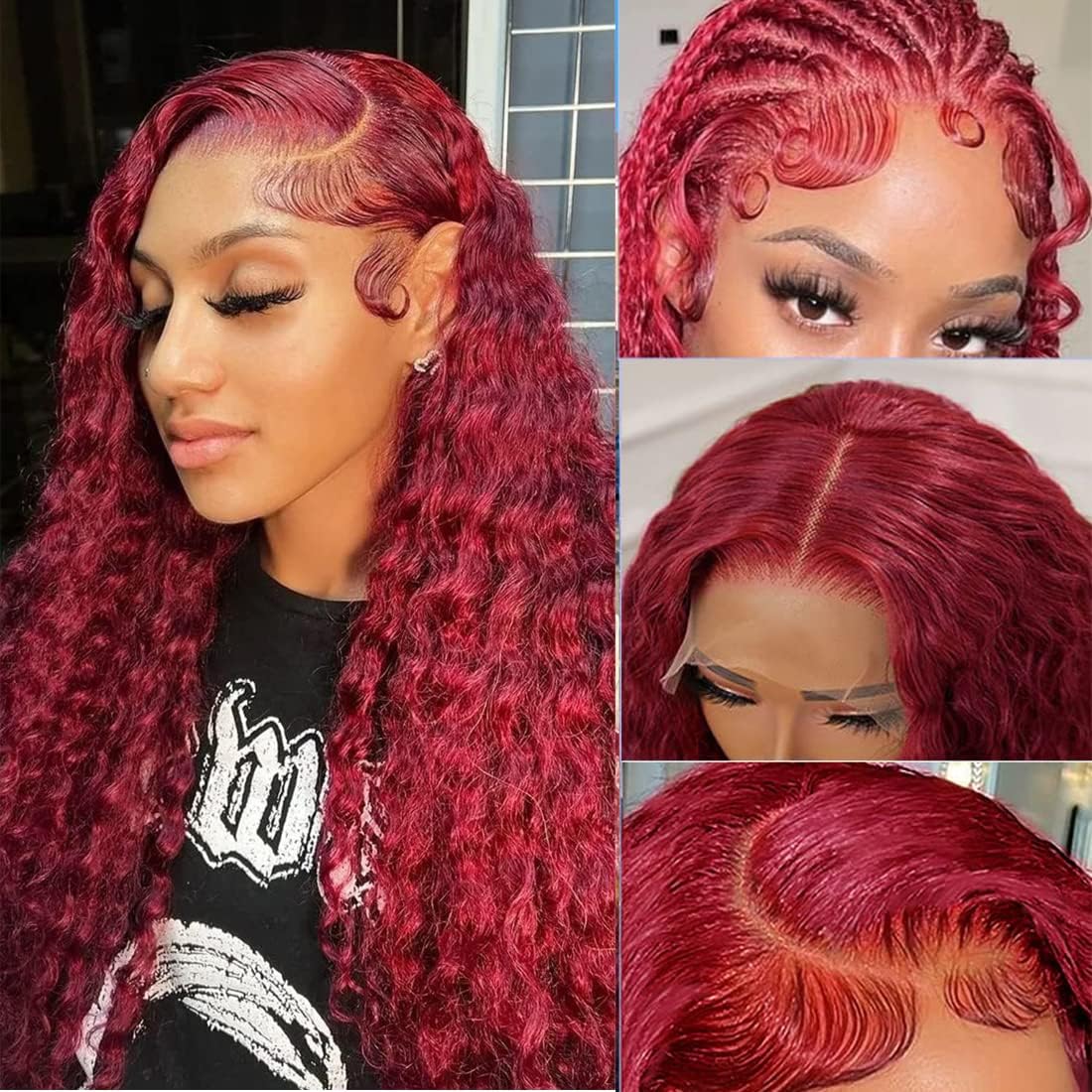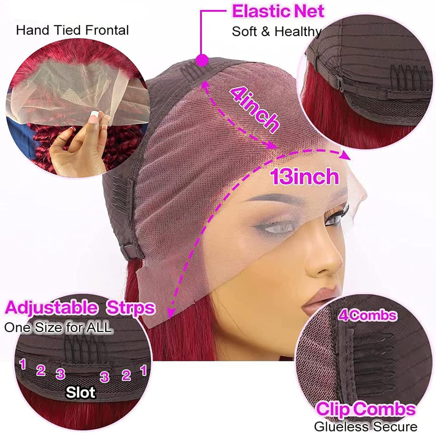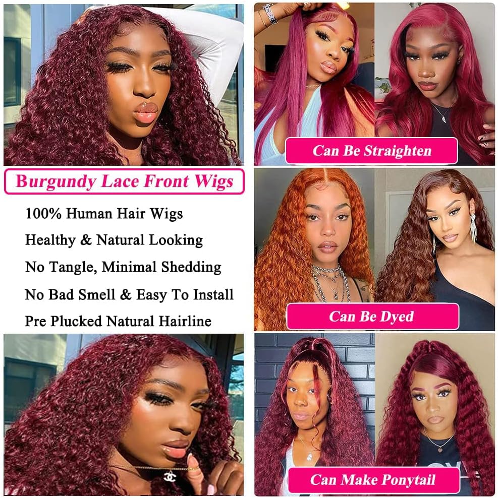 13X4 Lace Frontal Human Hair Wigs 22 INCH 99 J Burgundy Deep Wave Lace Front Wig