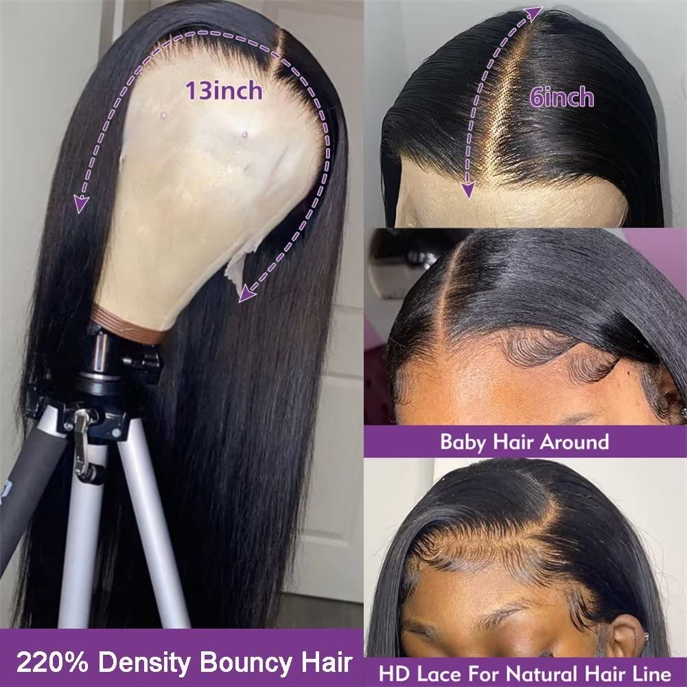 ★180% Density 13x6 Lace Wig: 100% Unprocessed Transparent 13x6 Lace Front Wigs Brazilian Straight Human Hair. 180% Density Gives You A More Bouncy & Full Look.