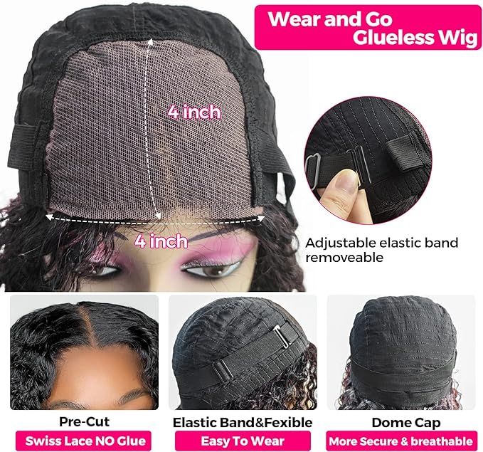 Human Hair Wigs Brazilian Glueless Wig Human Hair Lace Front Wig: 4x4 Closure Wigs Pre-Cut Human Hair Glueless Lace Front Human Hair Wig Wear and Go, Pre Plucked Hairline, Natural Looking Swiss Lace, Can Make More different hairstyles.