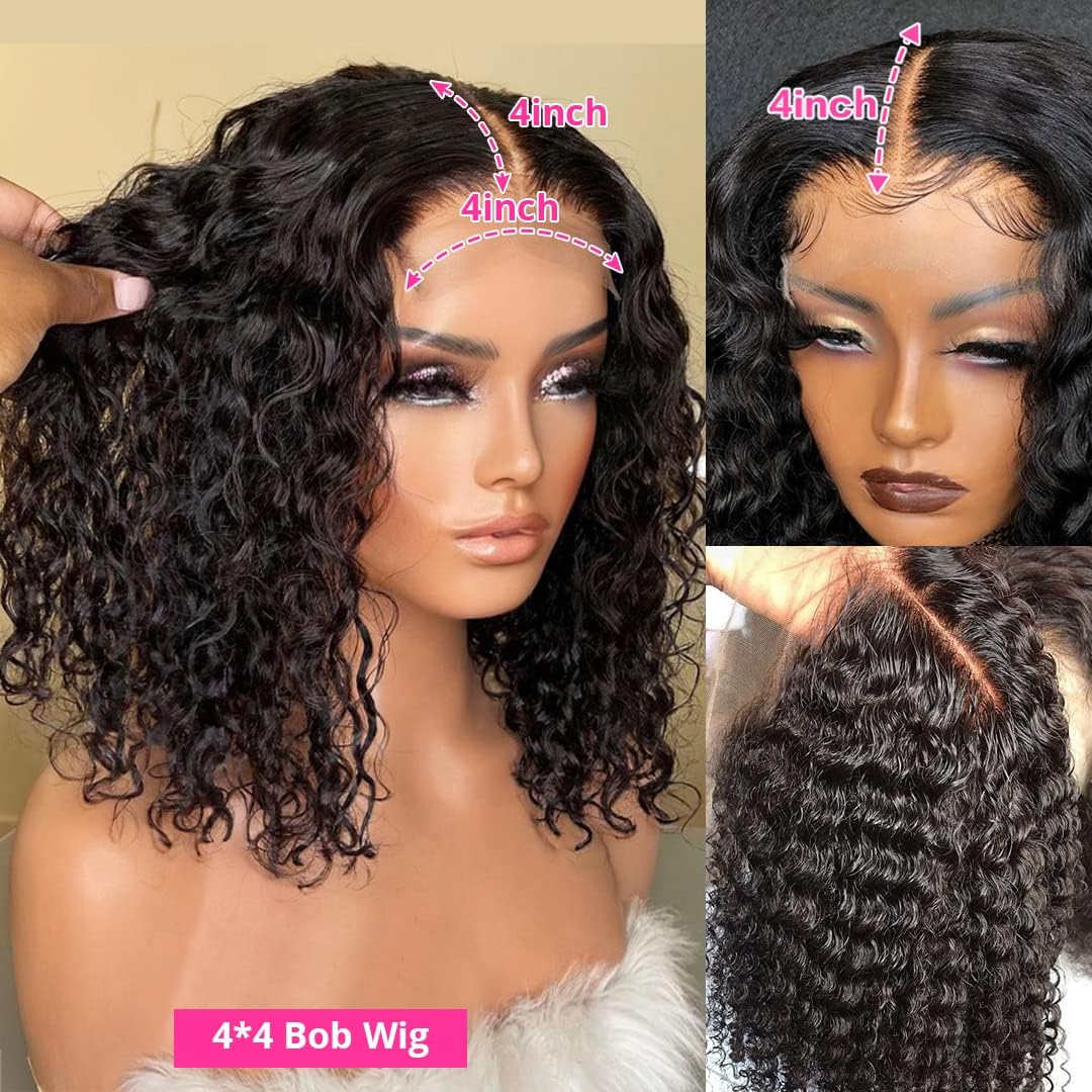 【Women's Bob Wig Style】Beautiful deep wavy texture, natural black color, 150% density, the hair is full and bouncy. The curly human hair wig is easy to maintain, can be straightened, dyed and restyled if you like.