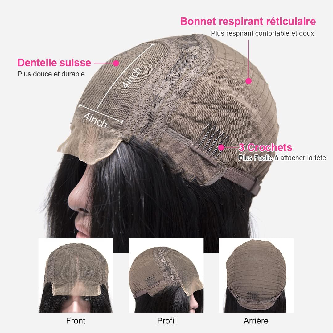 【Wig Cap Size】The wig cap is an average size of 22.5 inches, which is suitable for most people. There are adjustable straps and 3 combs to fix the short Brazilian women's wig.