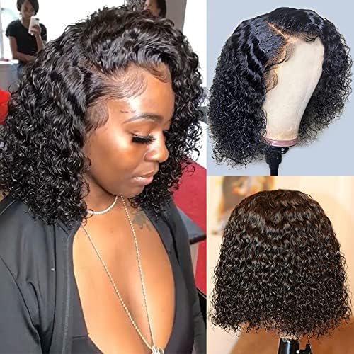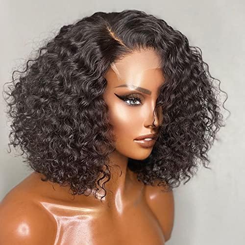 CEXXY Brazilian Curly Wig Bob Human Hair Side Part 13x4x1 T Part Lace Wig 150% D