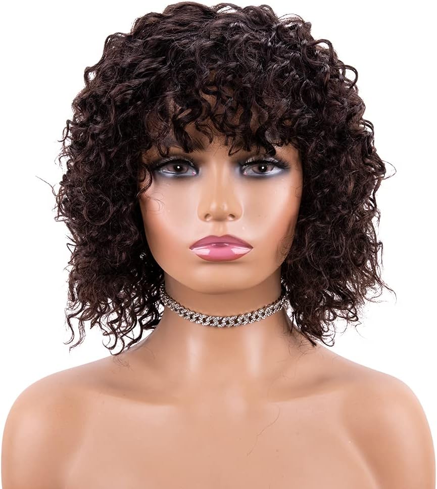 【14 Inch Brazilian Curly Wig】The 14 inch natural women's wig has beautiful curls, and a natural black color. High quality real human hair allows you to restyle the wig, or dye it into other colors you like.