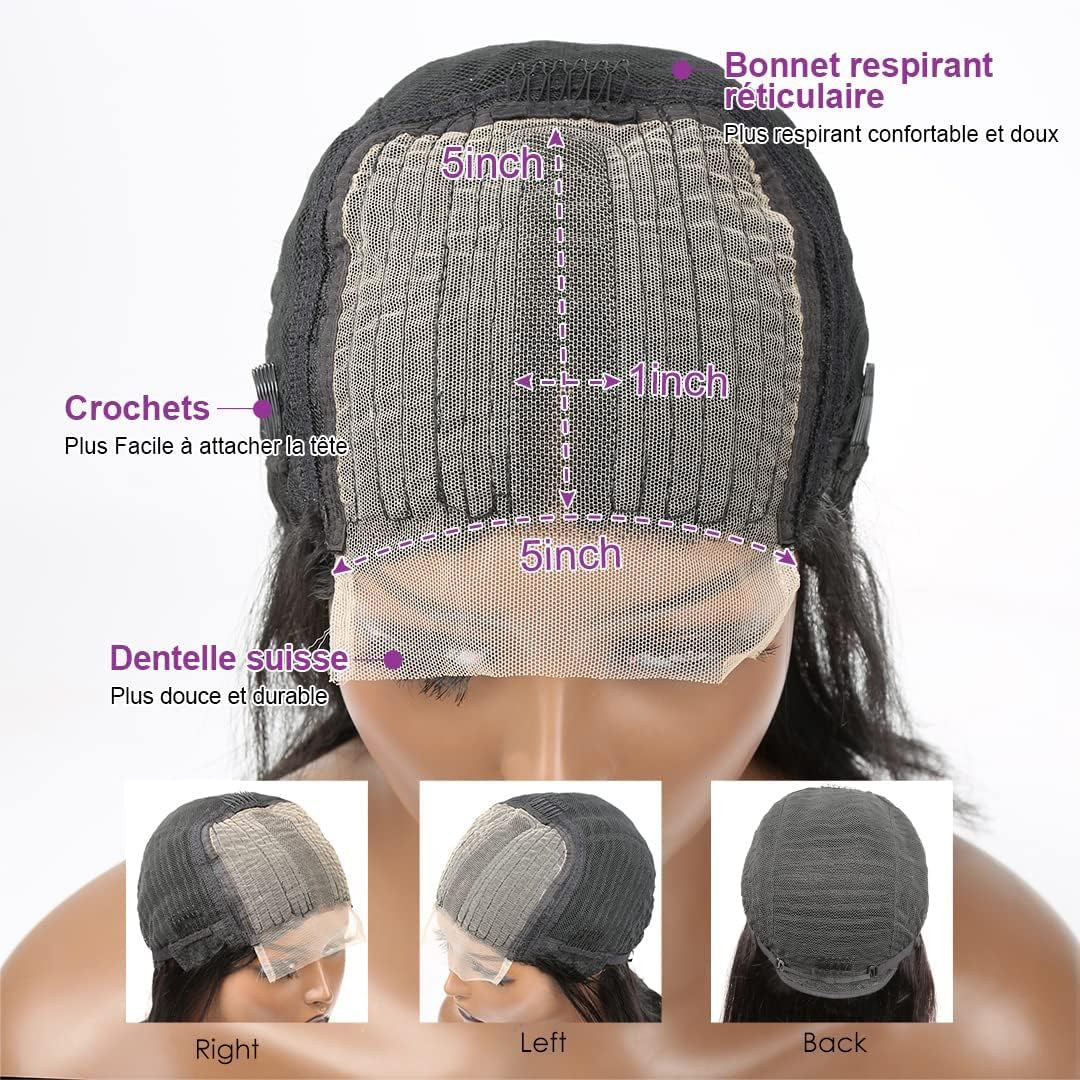 【Adjustable Wig Cap】22.5 inch medium wig cap, with adjustable straps and 4 combs to fit and secure, the short natural wig is breathable and comfortable to wear.