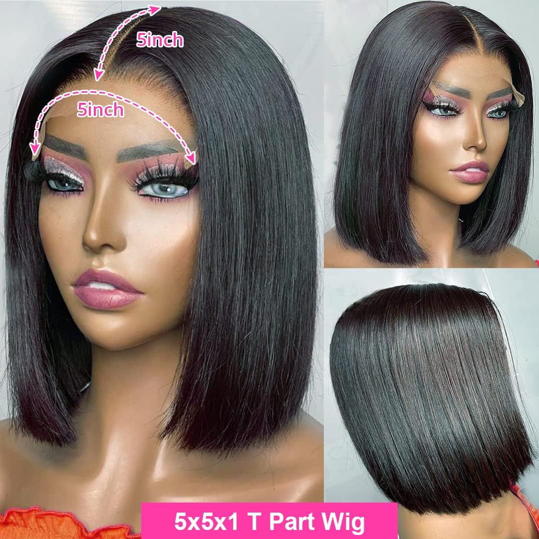 CEXXY Human Hair Wig Short Bob Wig 5*5*1 T Part Lace Closure Wig Women's Natural