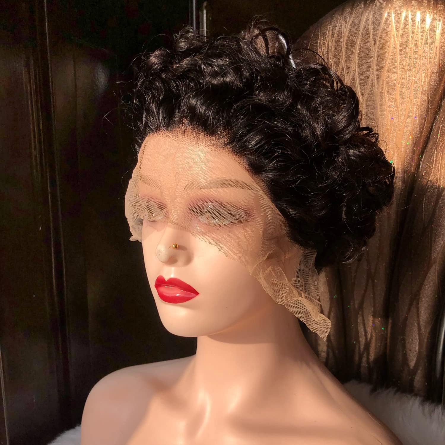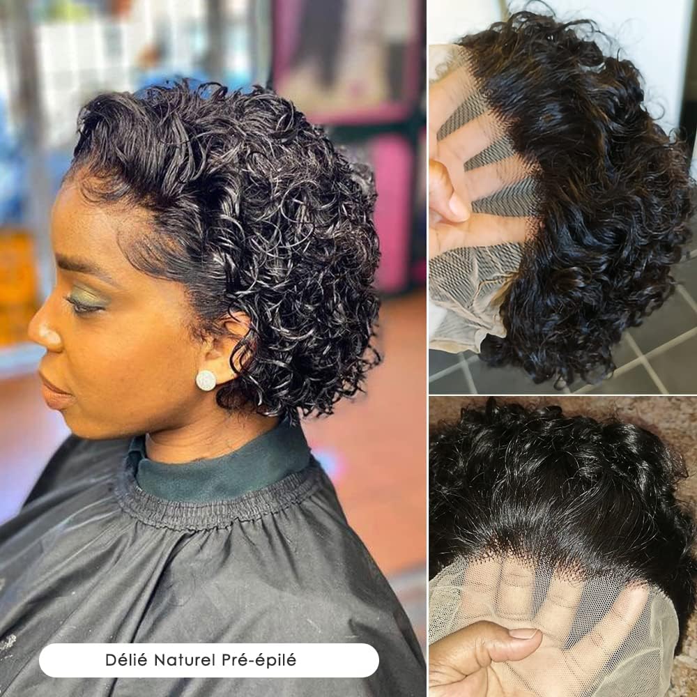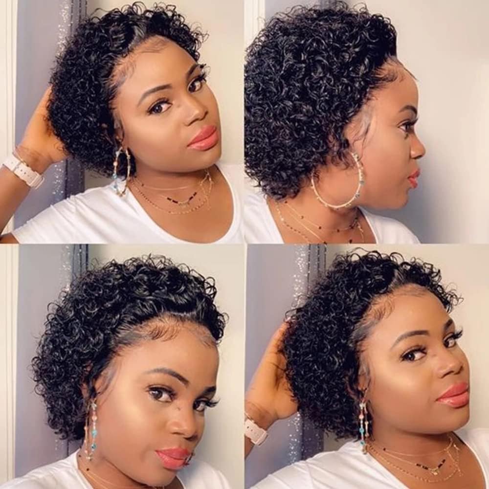 CEXXY Short Curly Brazilian Wig Short Brazilian Wig Natural Pixie 13*1 Lace Fron