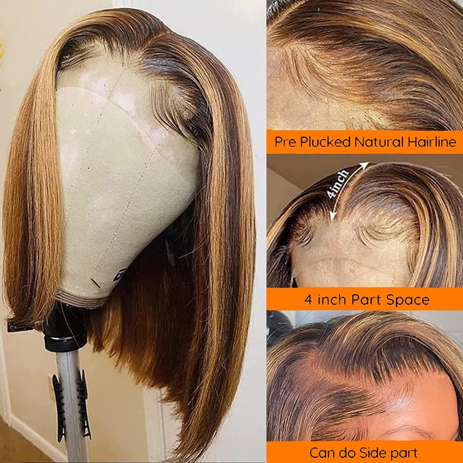 - Comfortable Feeling: Brown Mixed Honey Blonde Bob Wigs, Straight Wig Lace Front, Light Weight, True to Length, Soft Touch, Silky Straight Hair Wigs for Black Women, Natural Looking, Wear Comfortable, No Hurt to Your Own Hair, No Shedding, No Tangle