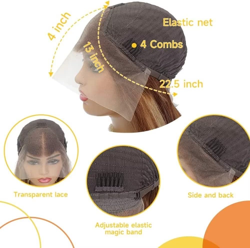 - Cap Size: Medium Size(22~22.3inch), 150 Density T Part Lace Front Wig 4/27, 13x4x1(Middle Part Lace) Transparent Swiss Lace Fits Your Scalp Better, Adjustable & Breathable Medium Brown Silk Cap with Rose Net, 3 Combs and 2 Elastic Adjustable Straps inside to Ensure a Tight Grip and Prevent Slip