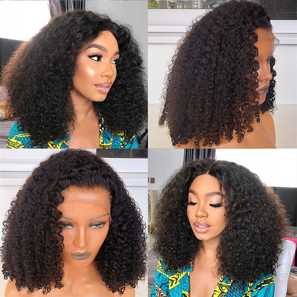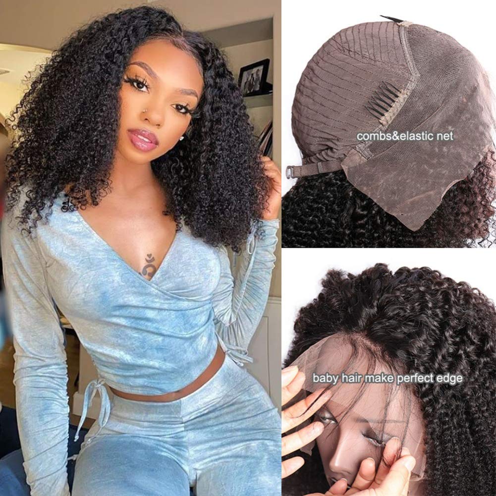 1.Hair Material: 100% Unprocessed Brazilian Kinky Curly Lace Front Wigs 180 Density Human Hair. Cut from young ladies. No chemical process, harmless to health. It’s Bouncy, Soft and Comfortable.