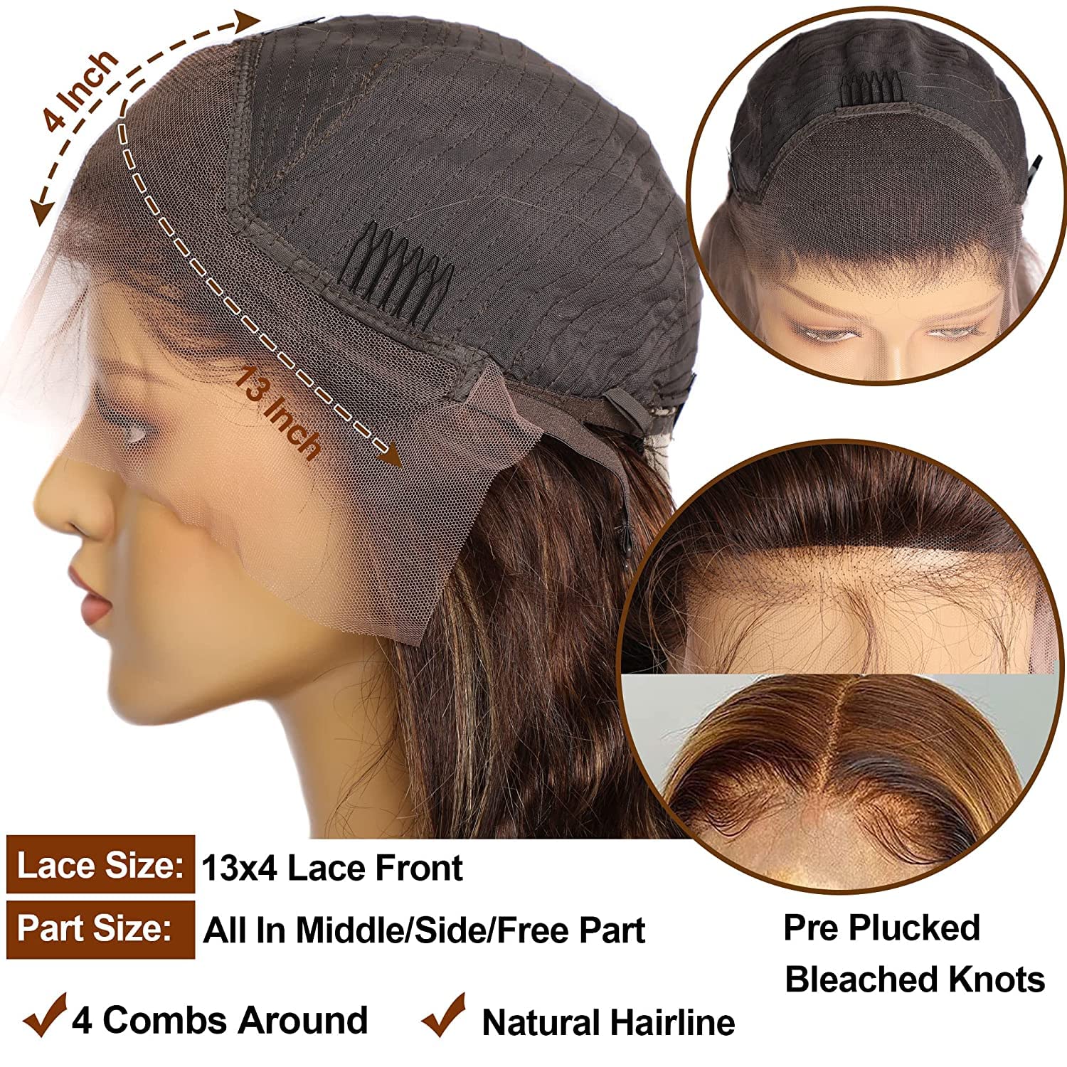 ★HD Transparent Swiss Lace: Breathable and Invisible Swiss Lace, Can Be Melted into your skin perfectly. 13X4 inch 1B/27 Human Hair Wig, Can Do Side Part or Middle Part As Your Like.