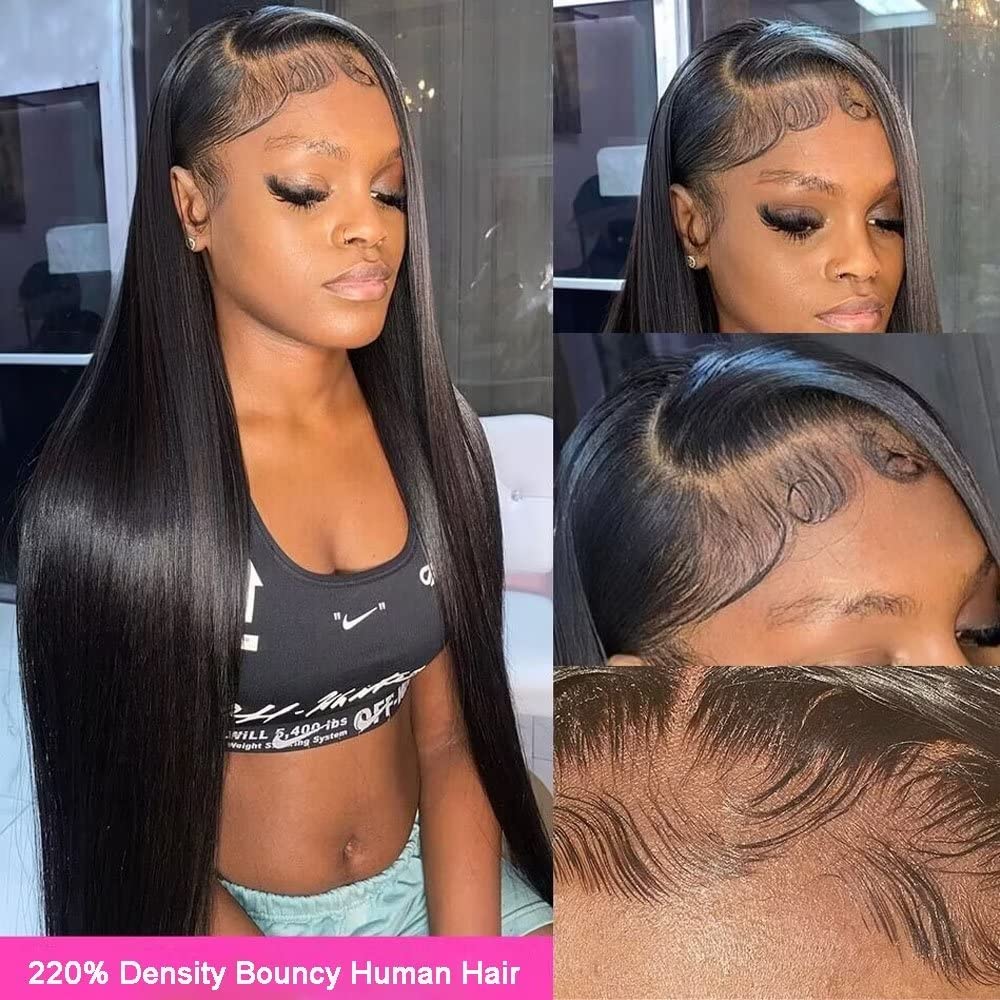 ★180% Density 13x6 Lace Wig: 100% Unprocessed Transparent 13x6 Lace Front Wigs Brazilian Straight Human Hair. 180% Density Gives You A More Bouncy & Full Look.