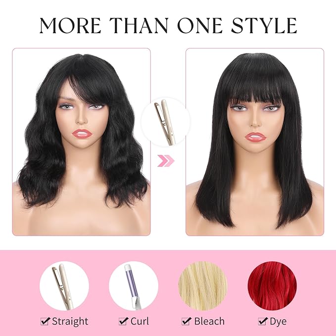 STYLES: 100% Human hair, can be straighten, curled, dyed and bleached. You can make the hair in different curls and colors, make different hair styles with WIGNEE human hair wigs with bangs.