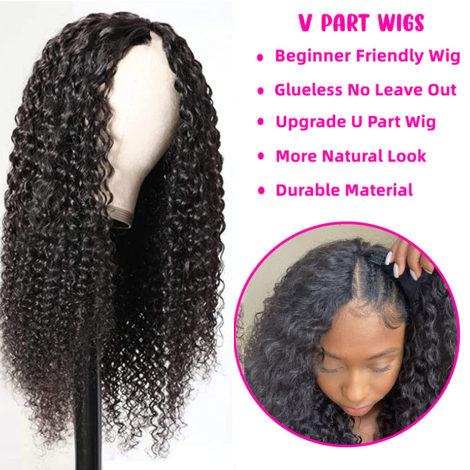 LOVFIR Kinky Curly V Part Wig Human Hair 180% Density Brazilian Virgin Curly V S