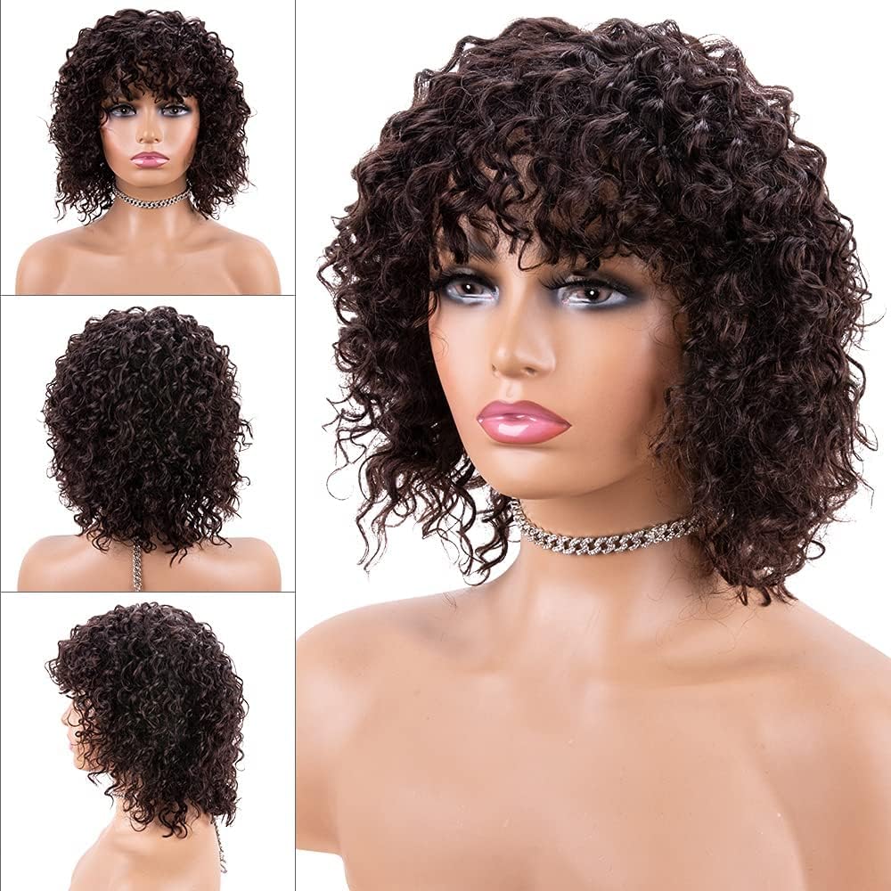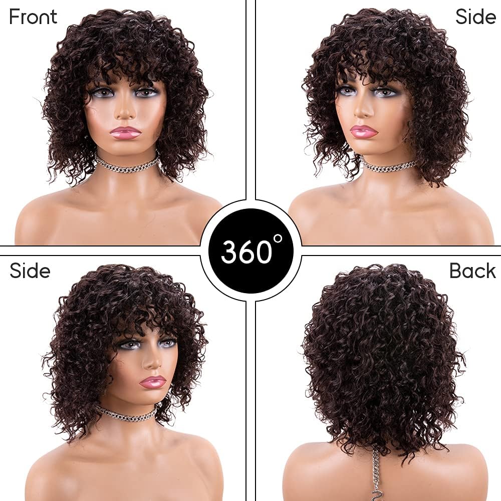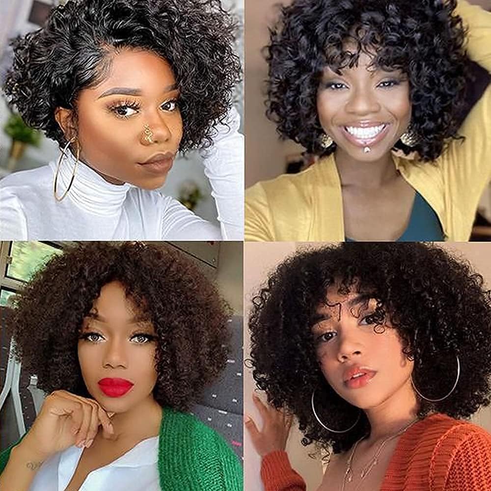 ❤ Short Curly Human Hair Material: Made of high quality human hair. It gives a smooth and soft touch, natural look, no tangles and shedding even after several washes. Lifespan: up to 1 year with good maintenance