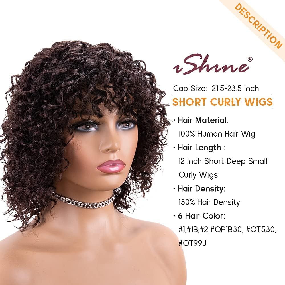 iShine 12 Inch Short Human Hair Wigs for Black Women Natural Brazilian Curly Afr