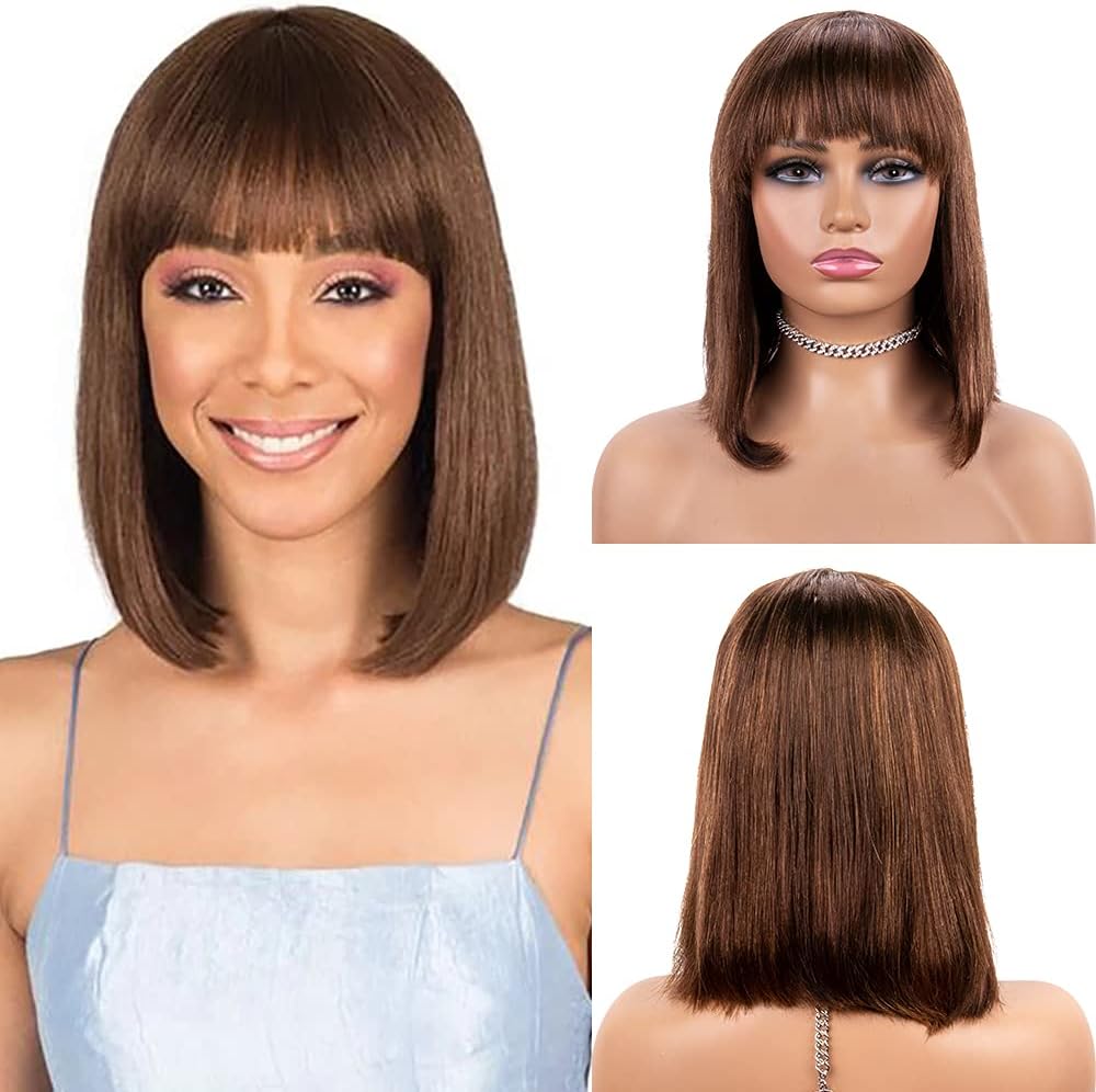 iShine Brazilian Natural Human Hair Wig Short Bob Straight Natural Wigs Remy Hum