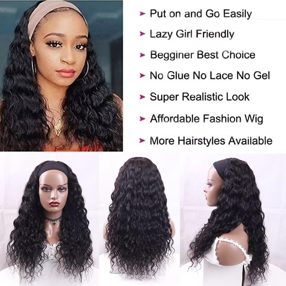 Color water wave headband wig
