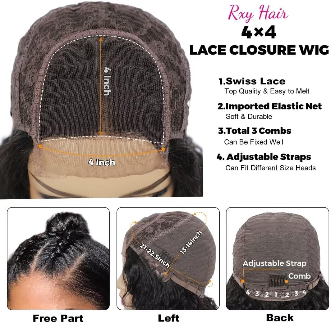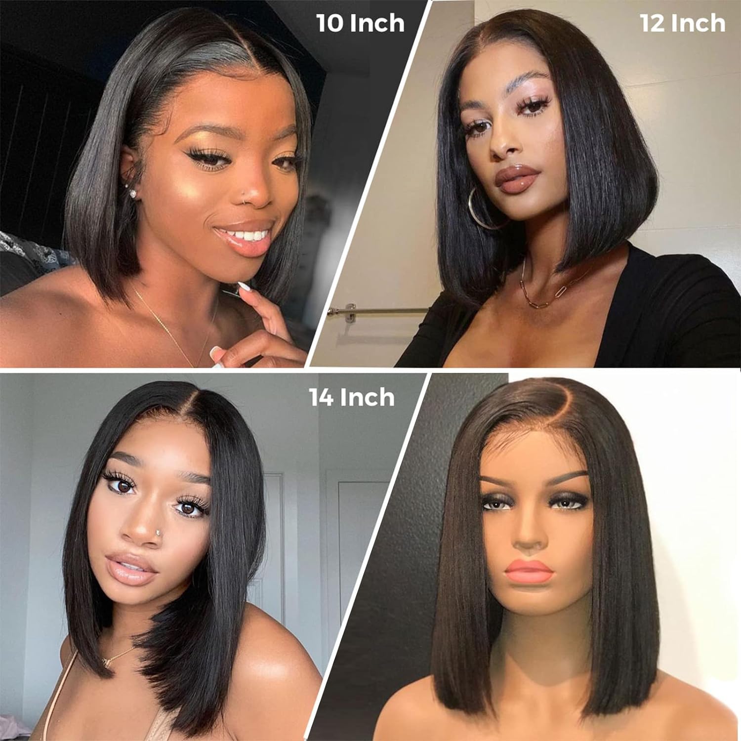 RXY Women's Natural Wig 12 Inch 4x4 Bob Straight Wig Brazilian Human Hair Lace F