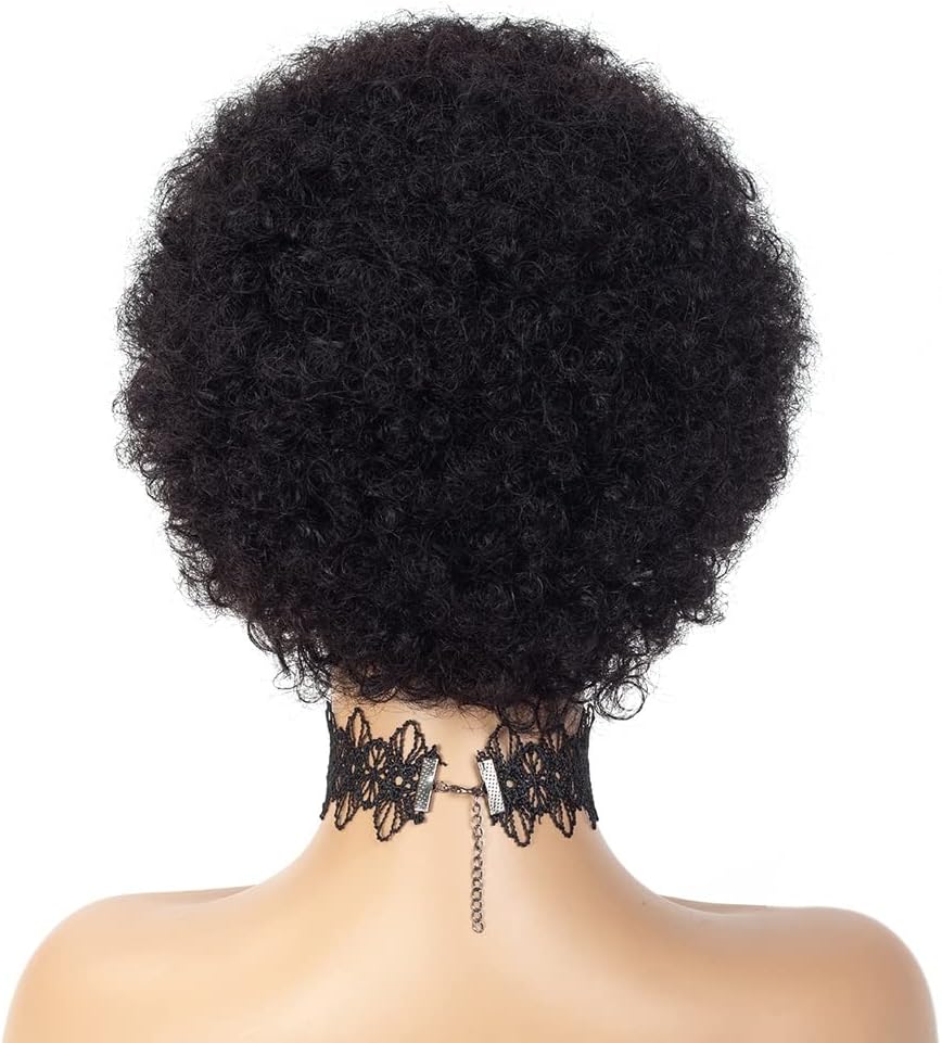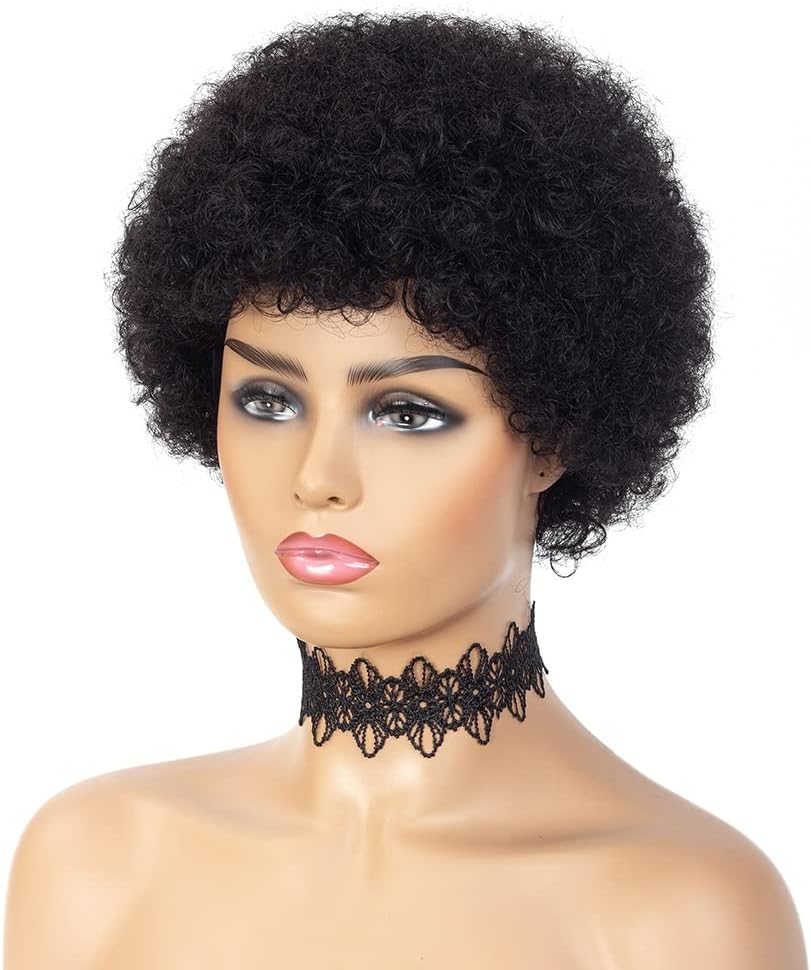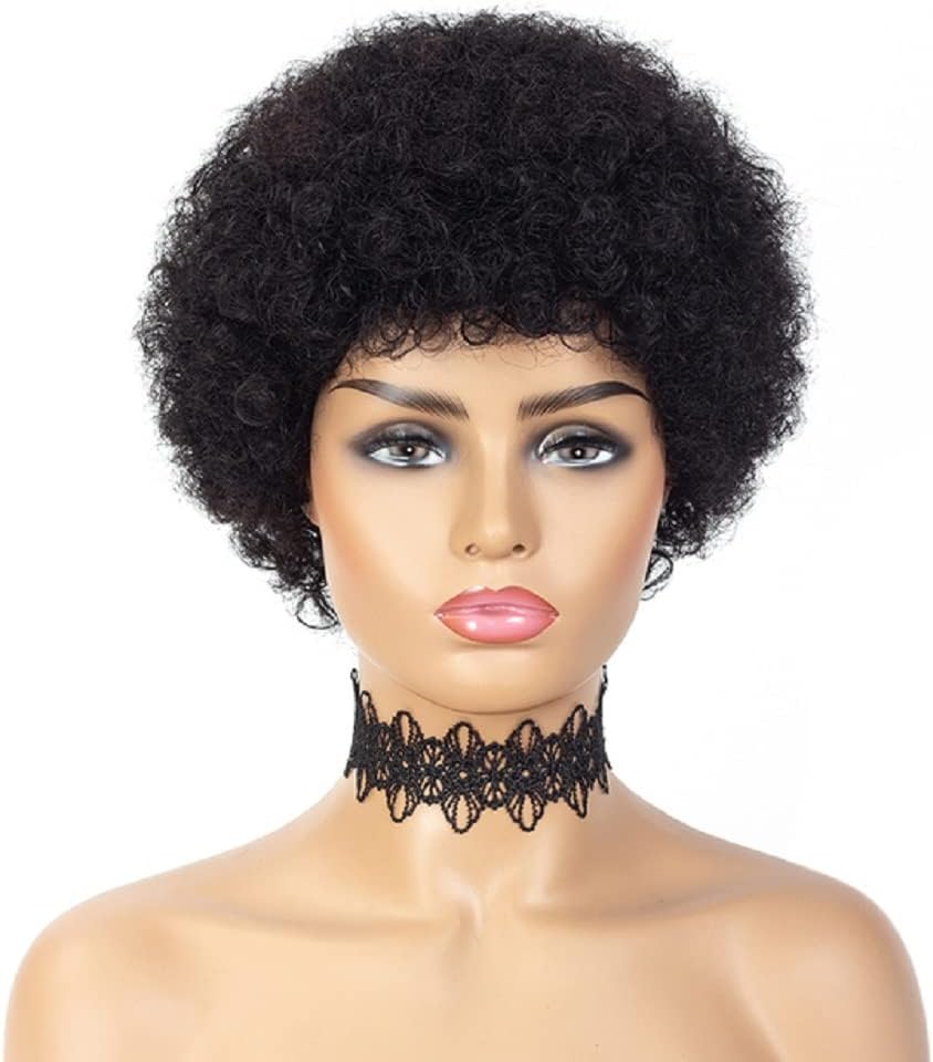 Short Brazilian Wig Natural Afro Wig for Women with Bangs Kinky Curly Human Hair