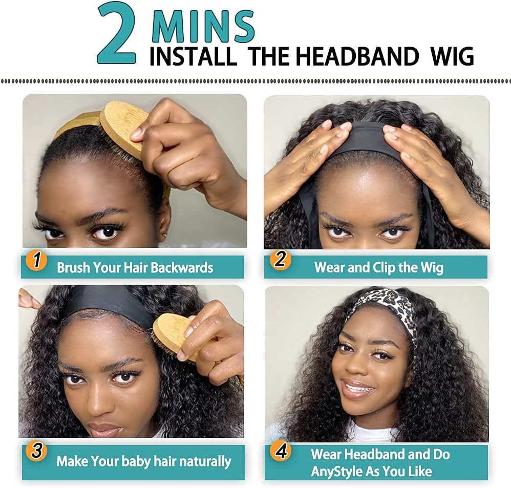 Smooth Material: Our kinky human hair is made of 9A grade unprocessed Brazilian human hair, tangle free and minimal shedding. Top quality Brazilian virgin hair, soft and healthy. The circumference of our curly human hair wig is 57.6cm (average size) which fits most people, 4 combs and Velcro ensure a tight grip and prevent slipping