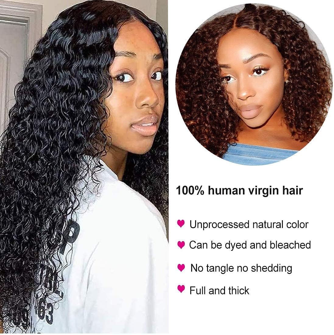 13" X 4" Lace Front Wig Brazilian Hair Highlights Natural Curly Hair. Hair detail: 8A untreated double weft Brazilian hair, natural black color.