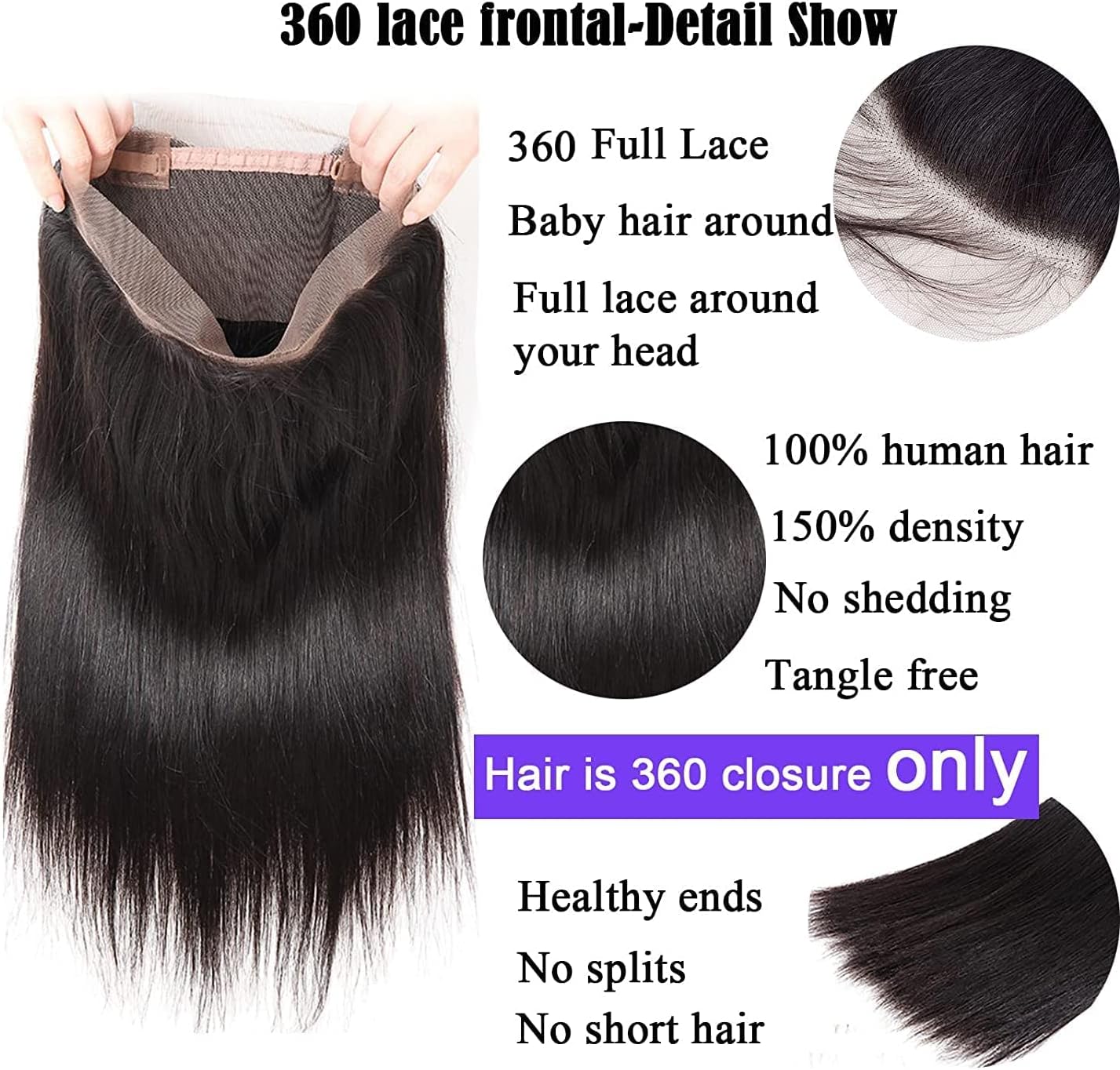 Hair material 360 LACE frontal 100% Brazilian virgin human hair, Straight wig, natural and healthy looking, minimal shedding and tangle free with regular maintenance.