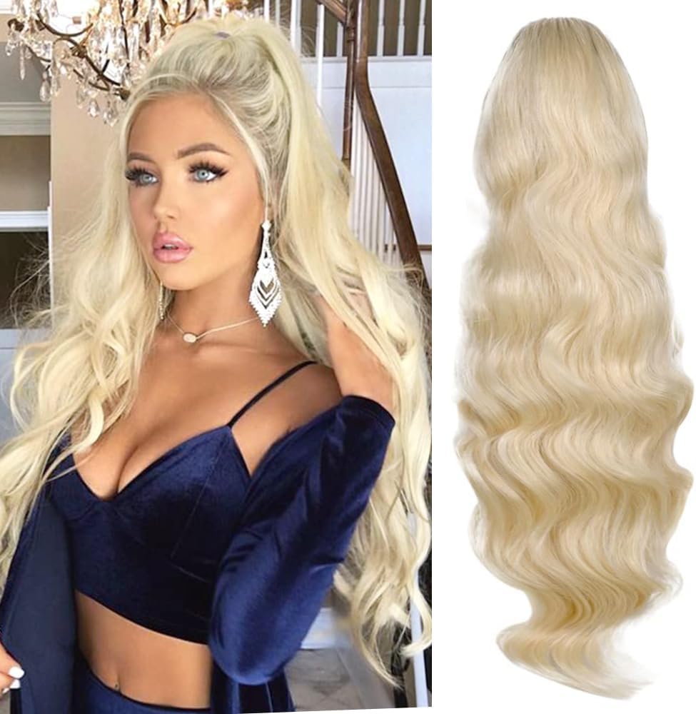 YEESHEDO Blonde Long Natural Wavy Ponytail Hair Extension for Women, Blonde Draw