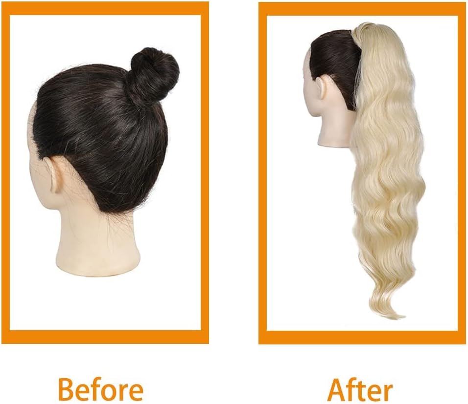 Long Curly Wavy Ponytail: Natural blonde hair color, long wavy ponytail extension changes for a glamorous new look Add length to your natural hair.